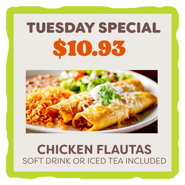 We offer authentic Mexican style fajitas, burritos, chimichangas, enchiladas, tamales, tostadas, salads, flautas, margaritas, and much more!